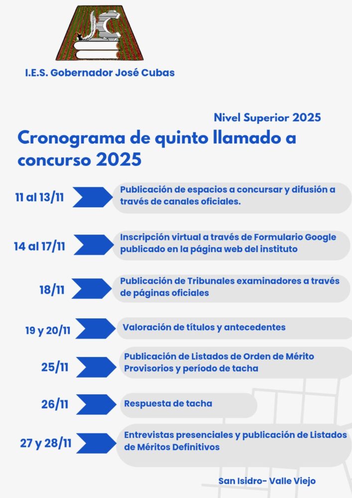 El Equipo de Condución del I.E.S. Gdor. José Cubas, informa la siguiente restructuración del Cronograma: